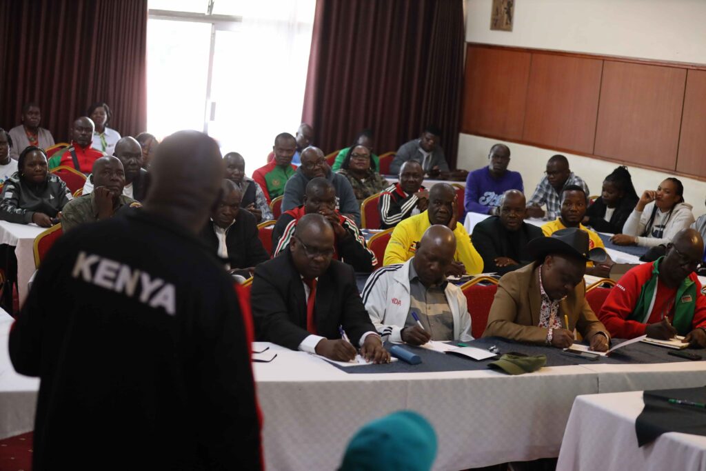 The inspection team wa sreceived by Nelson M. Sifuna the Director of Field Coordination and Co-curricular Activities, local Government officials headed by CPA Jackline Masicha- CECM Social Services, Gender, Sports, Youth, Culture and Library, Godfrey Owory- CECM Trade, Industrialization and Tourism, Saxon Kweyu- Chief Officer Youths, Sports and Library Services, Christine Kimunguyi – Chief Officer Social Services, Gender and Culture, KSSSA Officials, Principals of Various Education Institutions and Sports Masters.